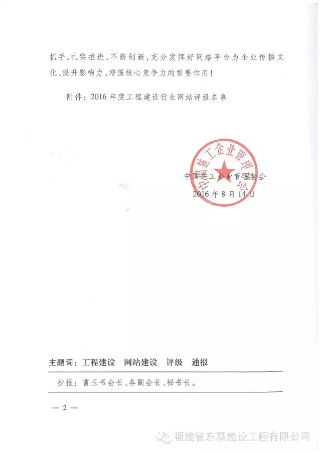 宝威在线登录企业网站被评定为“2016年度工程建设行业网站二级网站”