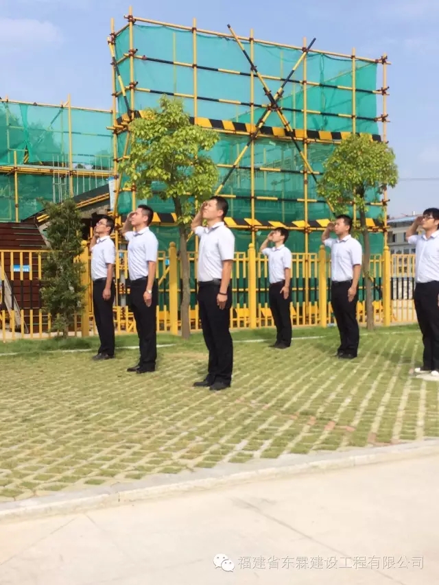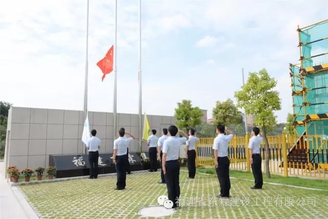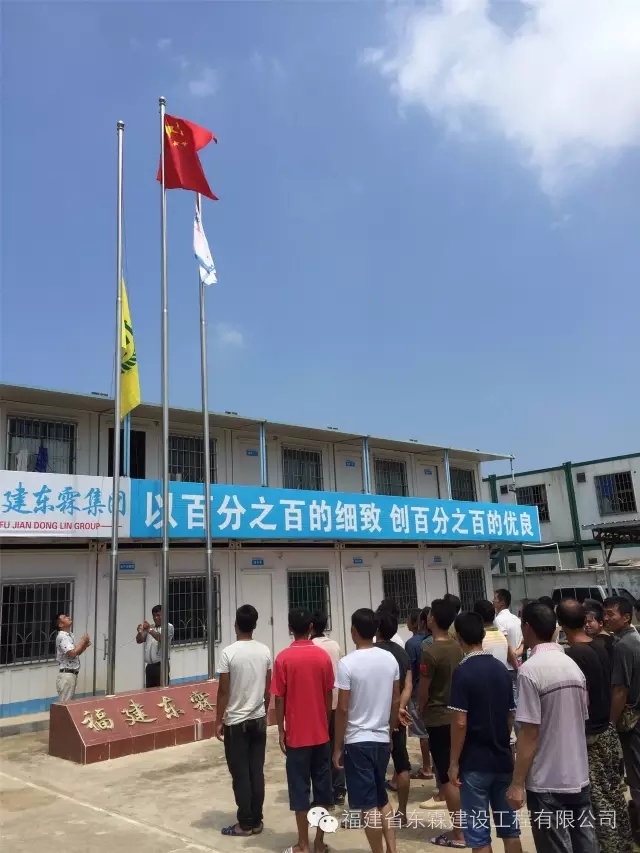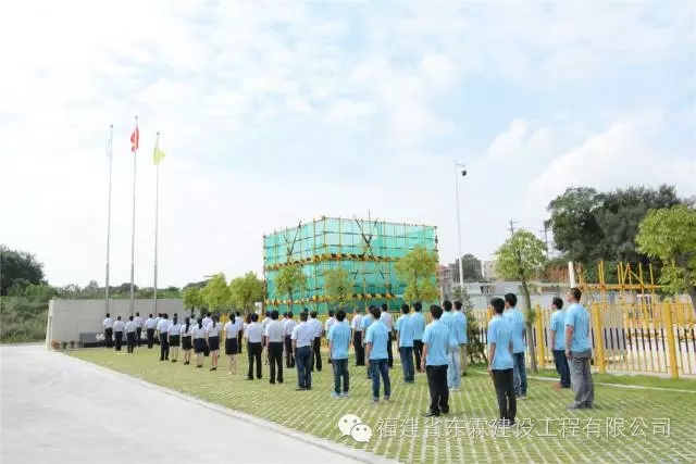 秋风猎国旗,晨曦迎华诞。又是一年金秋好时节,繁花似锦,欢歌如潮。2016年10月1日,福建东霖建设工程集团董事会林振聪董事长、经理室陈贤玻总经理、洪伟堂副总经理携各职能部门员工代表近70人在东霖集团建筑工业化产业基地隆重举行庄严的升旗仪式,庆祝中华人民共和国成立67周年。