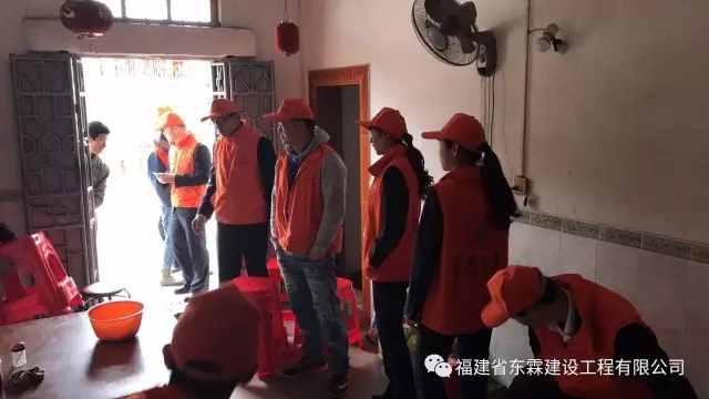 福建东霖建设工程集团行政部林红梅为老人家桌子简单收拾整理,行政部黄冰冰帮大娘清洗了碗和家具,质安部吴楚焜把老人家里一个破坏的窗户进行简单修复。