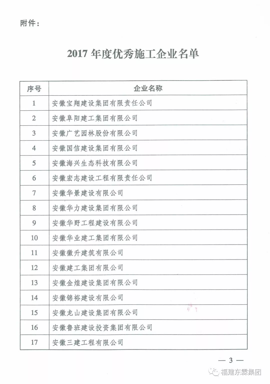 2018年3月23日,中国施工企业管理协会发布了2017年度全国优秀施工企业名单,福建省东霖建设工程有限公司荣膺“2017年度优秀施工企业”。